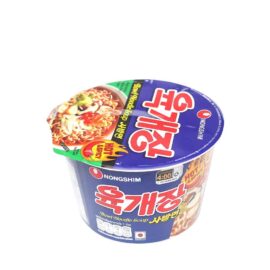 It has a spicy taste. The noodles are soft and chewy. Korean chili onion